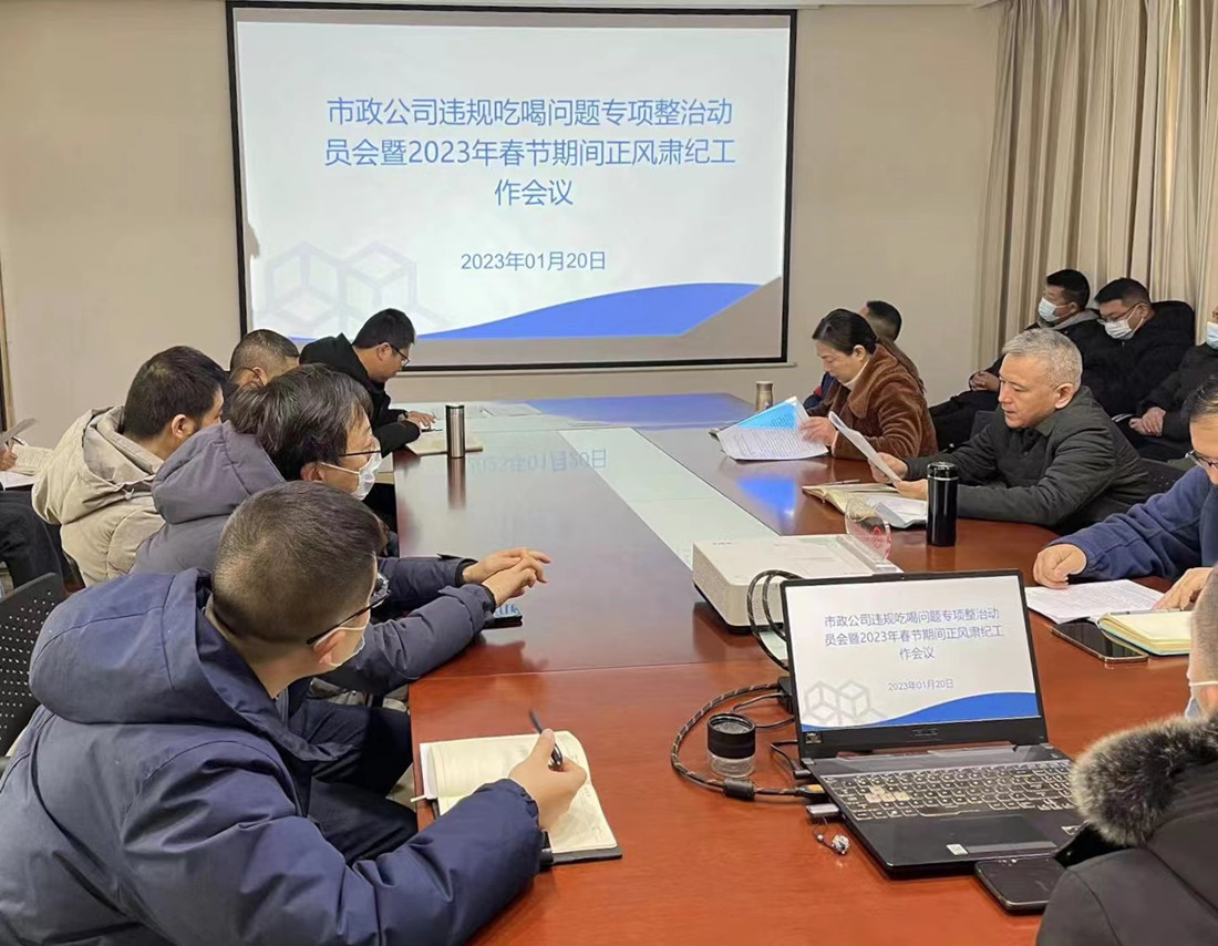 为深入贯彻党的二十大精神,进一步巩固和落实中央八项规定精神成果,驰而不息纠治“四风”,营造崇廉尚俭、风清气正的节日新风尚。1月20日,市政公司召开违规吃喝问题专项整治动员会暨2023年春节期间正风肃纪工作大会。公司各项目经理、总工及关键岗位人员参加会议。